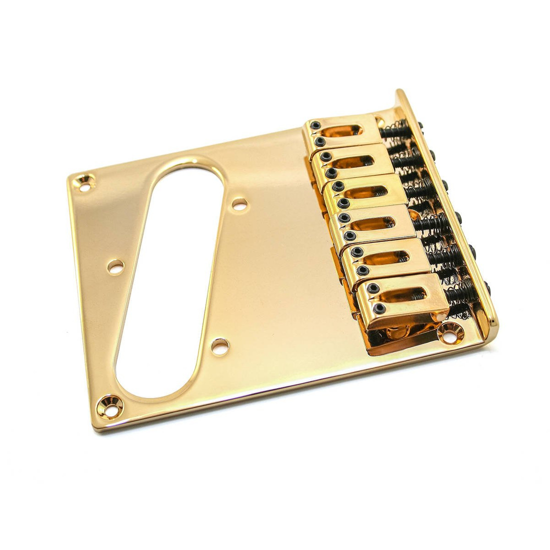 • Mostek stały do gitary typu Tele, z tulejami, struny przewlekane przez tył korpusu. Posiada specjalnie wycięty otwór pod przetwornik typu single-coil. Kolor chrom lub czarny. Sprzedawany w komplecie mostek+tuleje. Rozstaw kostek - pitch: 55mm.