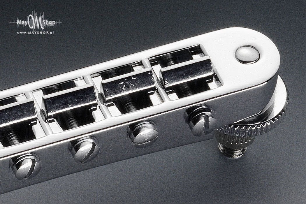 - Wysokiej jakości mostek do gitar typu Les Paul. Dodatkowe sprężyny dociskające siodełka zapobiegają ich brzęczeniu i przesuwaniu się w trakcie gry. Zestaw zawiera tuleje i śruby montażowe. Dostępny w wielu wersjach kolorystycznych. Siodełka bez nacięć.