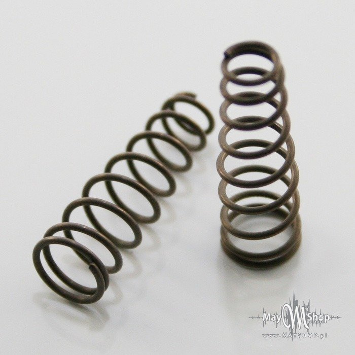 - Sprężyny do bezpośredniego montażu przetworników w gitarze - pod przetwornik. Sprężyny stożkowe o długości 22 mm i średnicy 6,0/3,6 mm. Drut o średnicy 0,7 mm. Komplet składa się z 10 sztuk.