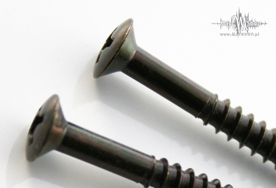 - Wkręt przeznaczony do łączenia korpusu z gryfem, dostępny w wersji chromowanej i czarnej. Cena za sztukę.