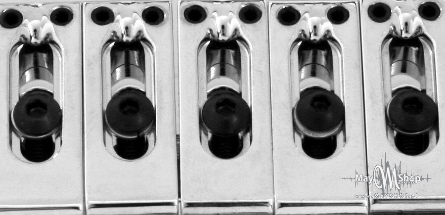 - Mostek stały do siedmiostrunowej gitary elektrycznej. Solidna, mosiężna konstrukcja. Chrom, czarny lub złoty. W zestawie tuleje do montażu przez korpus.